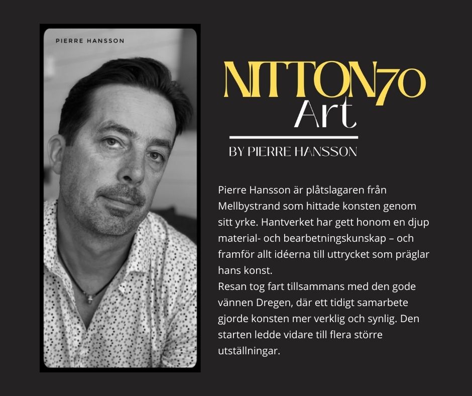 Pierre Hansson är plåtslagaren från Mellbystrand som funnit konsten via sitt yrke. Yrket har givit honom både materialkunskap och bearbetningskunskap samt ideér.